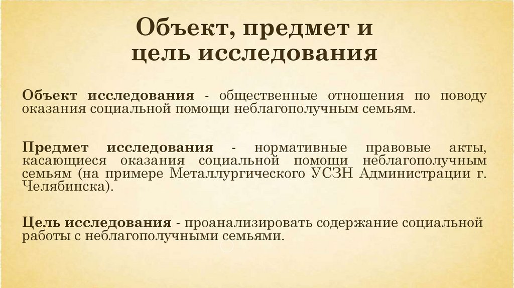 Объект, предмет ицель исследования