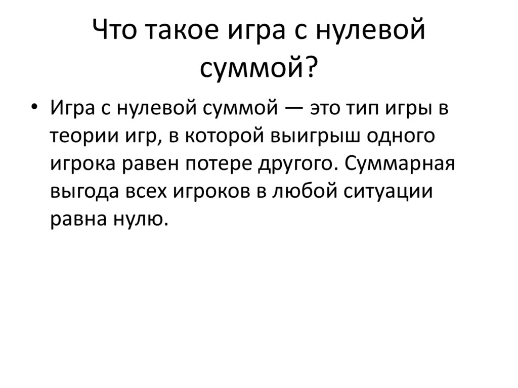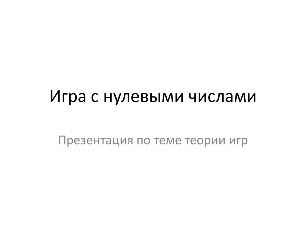 Игра с нулевыми числамиПрезентация по теме теории игр