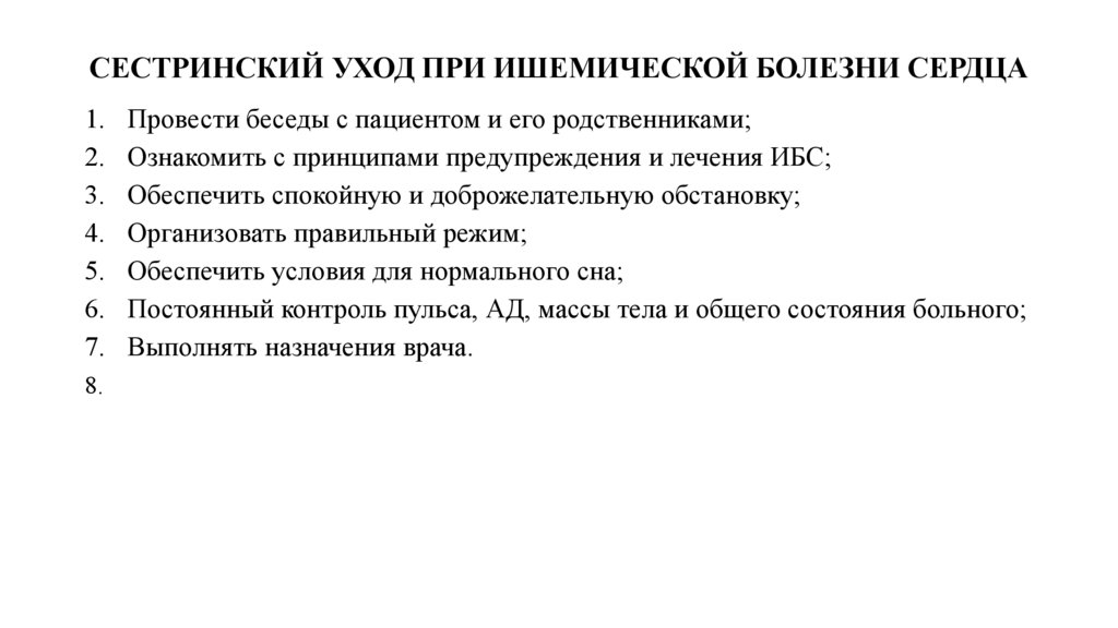 ухода при оказании помощи пациентам с ишемической болезнью сердца. Были