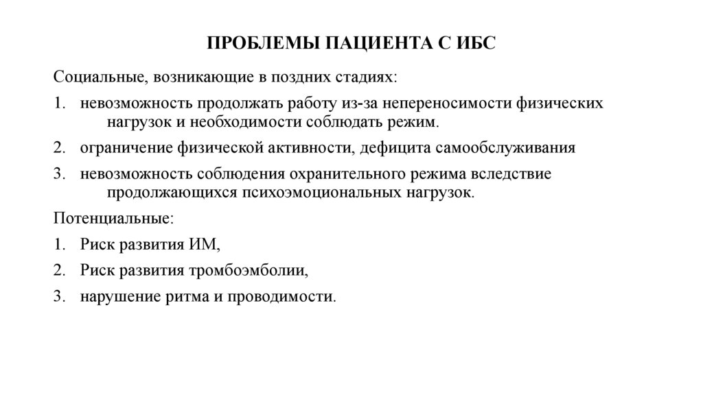ПРОБЛЕМЫ ПАЦИЕНТА С ИБСФизиологические: