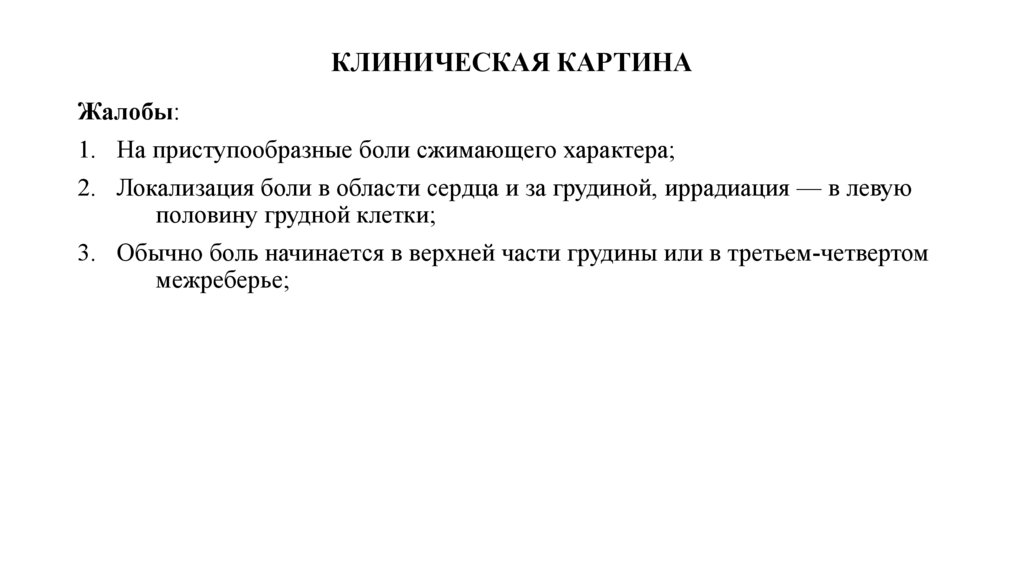 2. Локализация боли в области сердца и за грудиной, иррадиация — в левую