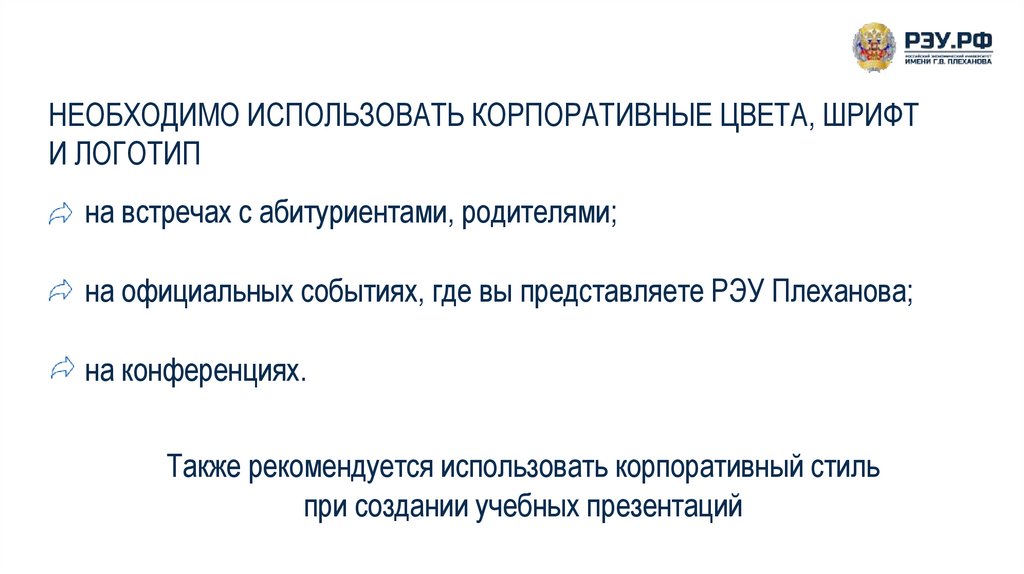 РЭУ.РФ. Об использовании корпоративной символики, цвета и стиля
