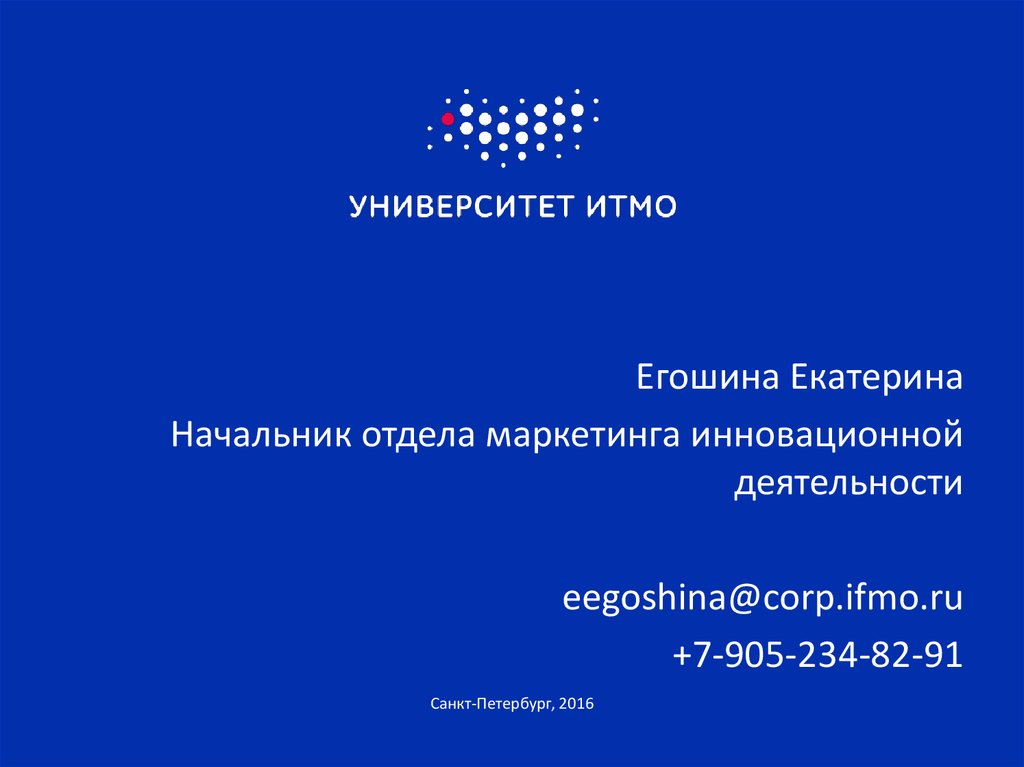 Егошина ЕкатеринаНачальник отдела маркетинга инновационной