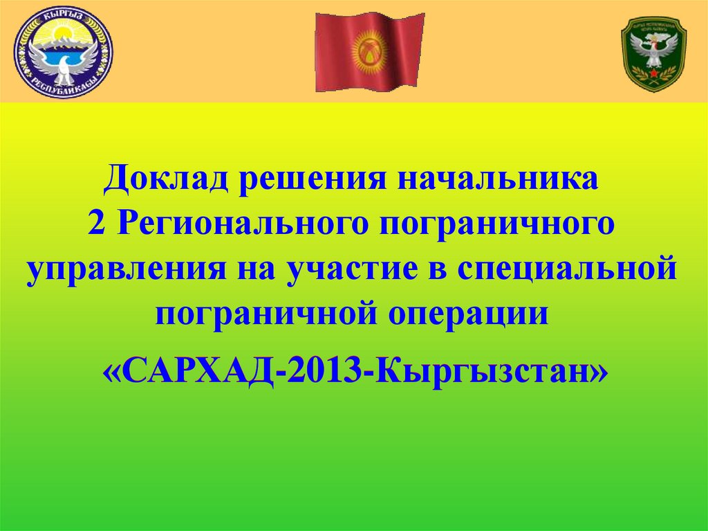 Доклад решения начальника на участие в специальной пограничной операции «САРХАД-2013-Кыргызстан»