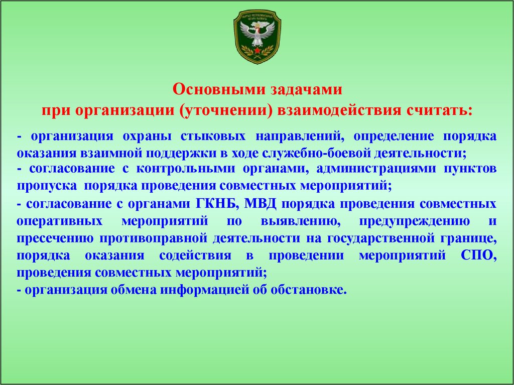 Основными задачамипри организации (уточнении) взаимодействия считать: