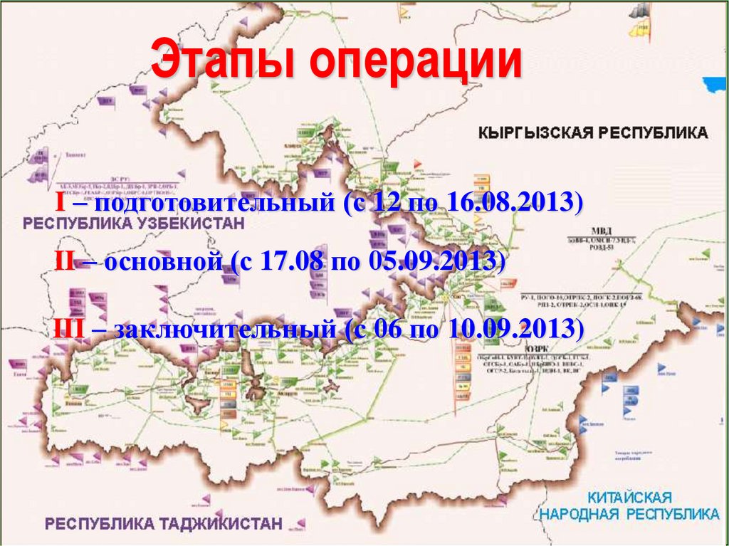 Этапы операцииI – подготовительный (с 12 по 16.08.2013)