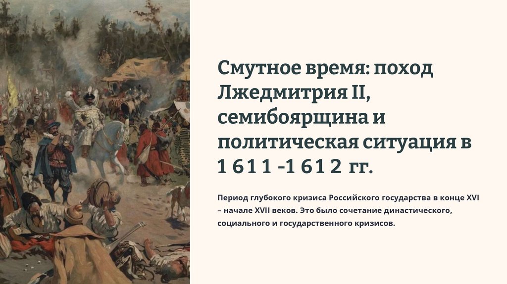 Смутное время: поход Лжедмитрия II, семибоярщина и политическая ситуация в 1611 - 1612 гг