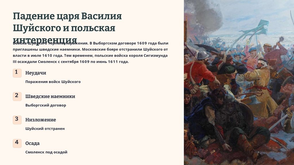 Войска Шуйского терпели поражения. В Выборгском договоре 1 6 0 9 года были