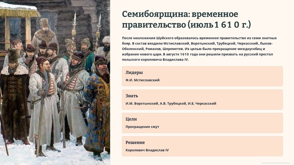 После низложения Шуйского образовалось временное правительство из семи знатных