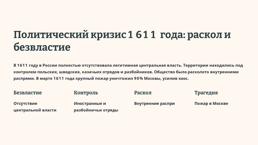 Политический кризис 1 6 1 1 года: раскол ибезвластие