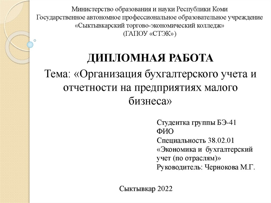 Организация бухгалтерского учета и отчетности на предприятиях малого бизнеса