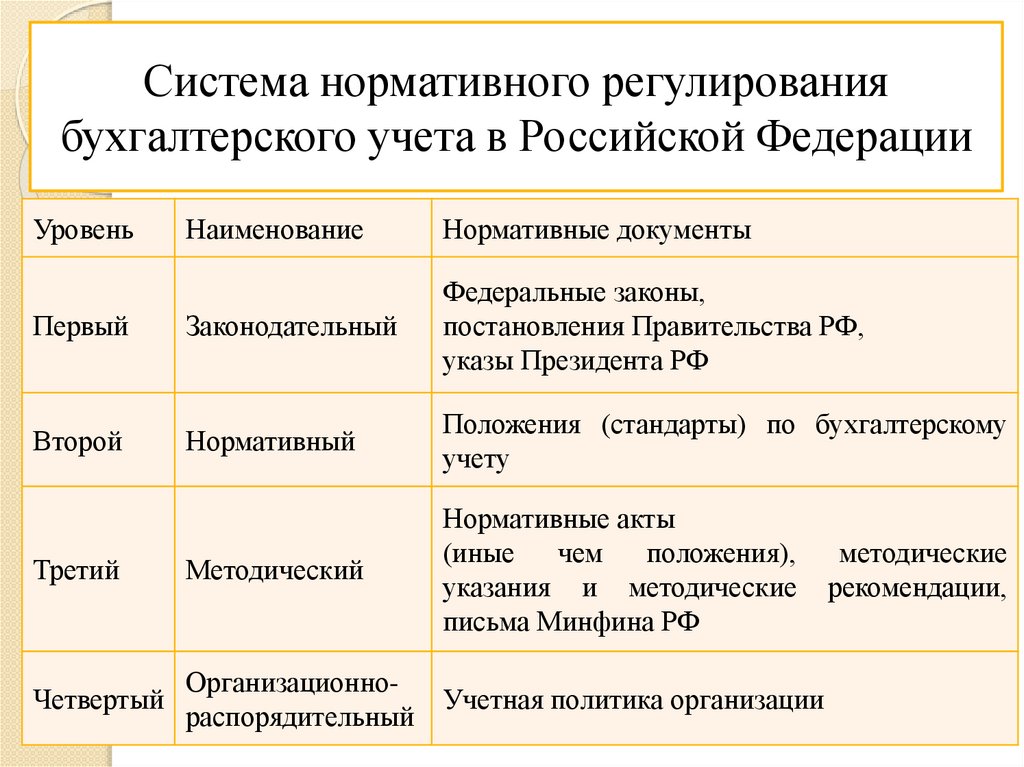 5. Система нормативного регулирования бухгалтерского учета в Российской Федерации