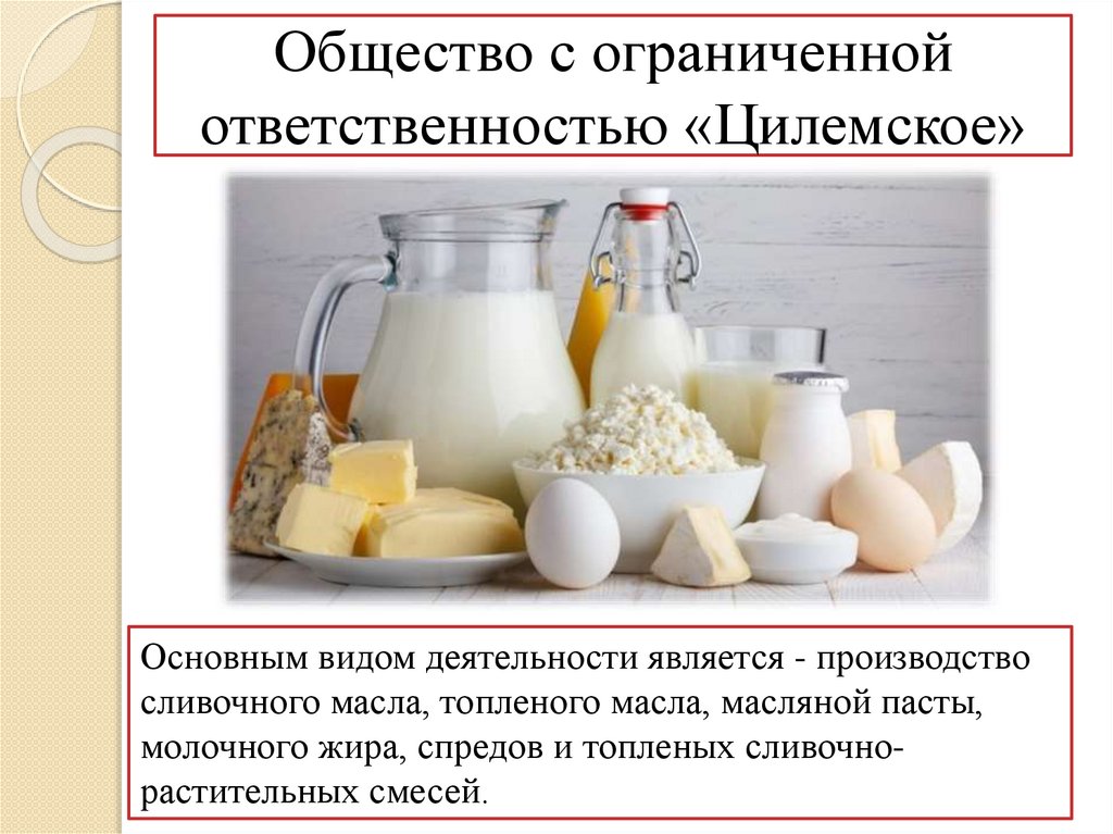 Основным видом деятельности является - производствосливочного масла, топленого масла, масляной пасты,