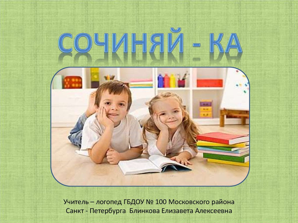 Учитель – логопед ГБДОУ № 100 Московского районаСанкт - Петербурга Блинкова Елизавета Алексеевна