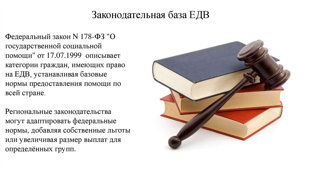 Законодательная база ЕДВФедеральный закон N 178-ФЗ "О