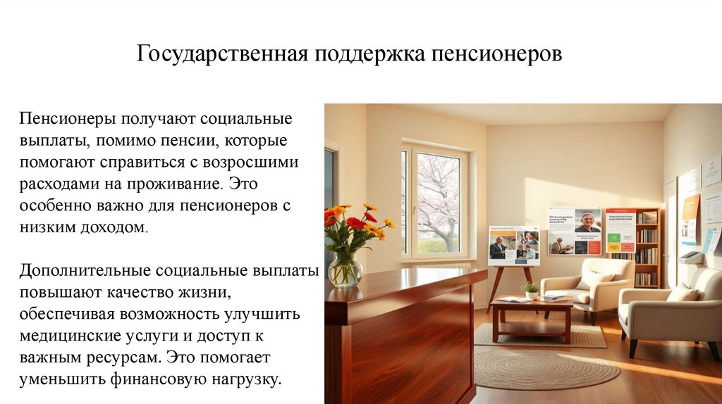 Государственная поддержка пенсионеровПенсионеры получают социальные
