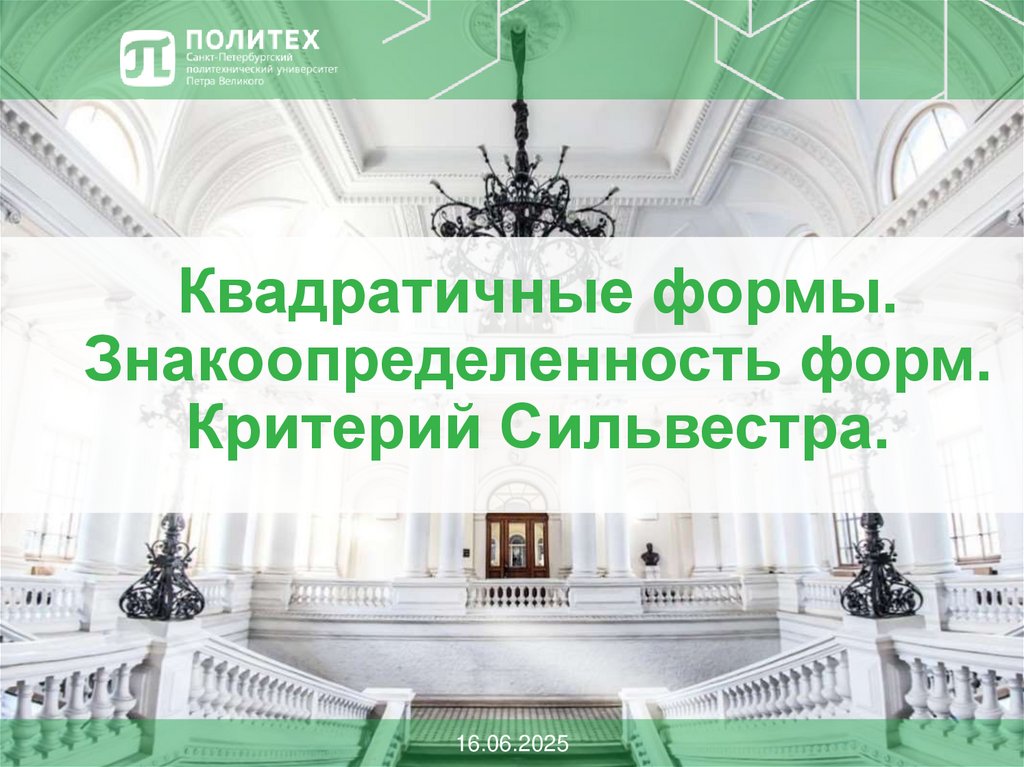 Квадратичные формы. Знакоопределенность форм. Критерий Сильвестра