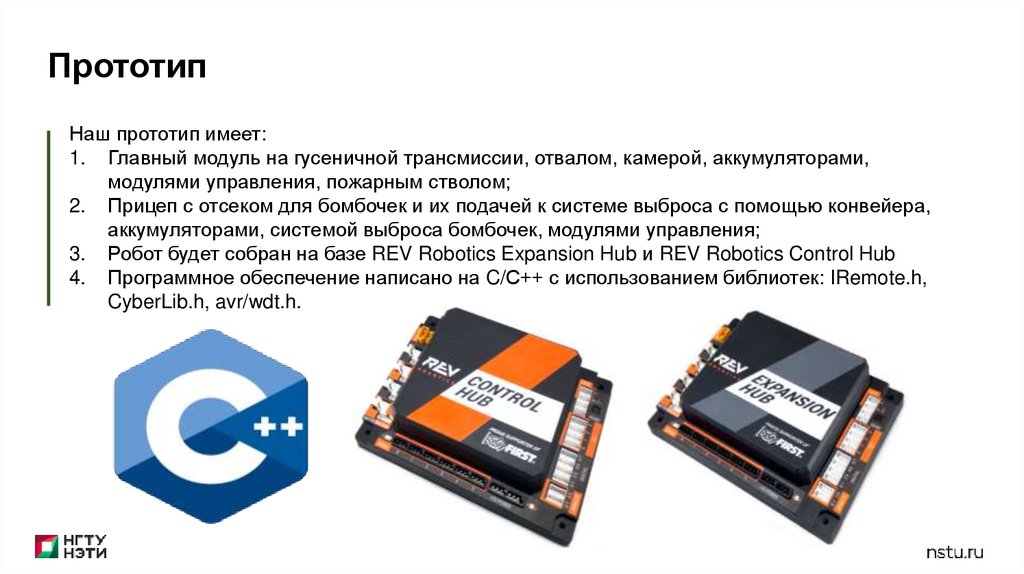 3. Робот будет собран на базе REV Robotics Expansion Hub и REV Robotics Control Hub
