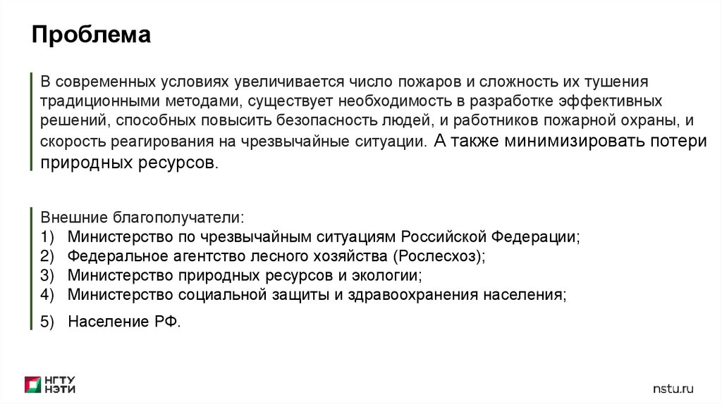 ПроблемаВ современных условиях увеличивается число пожаров и сложность их тушения