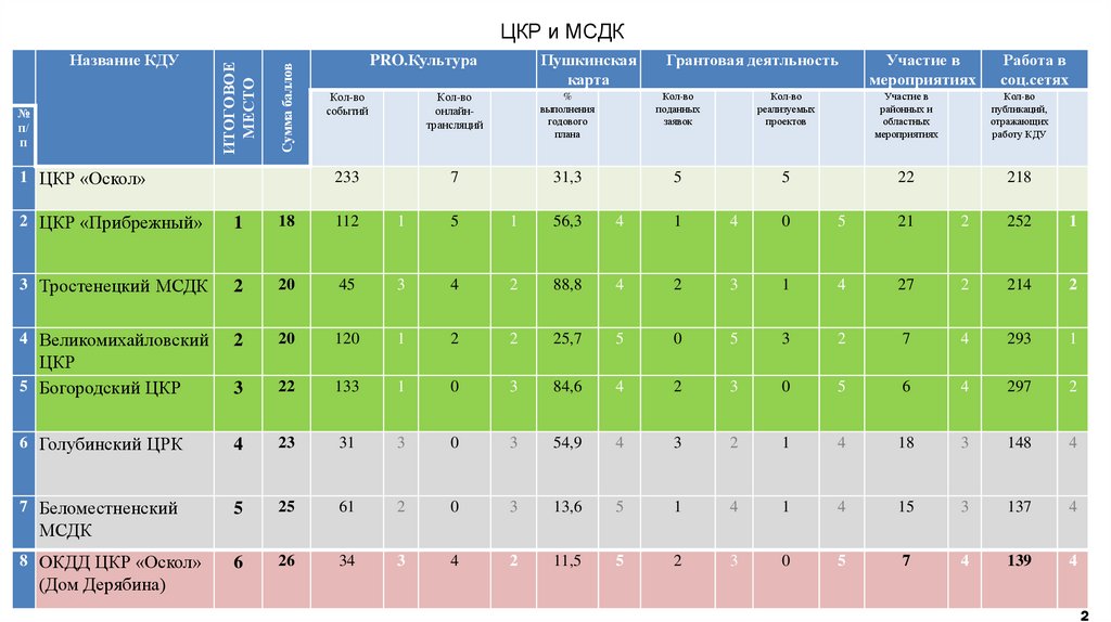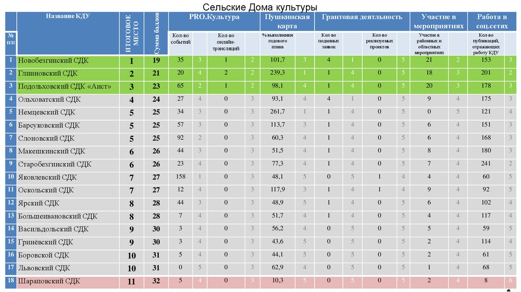 Рейтингование культурно-досуговых учреждений управления культуры администрации Новооскольского муниципального округа