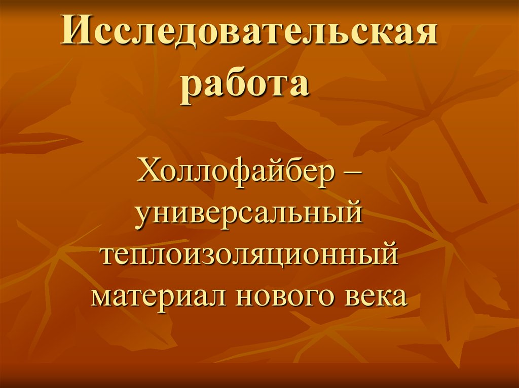1. Исследовательская работа Холлофайбер – универсальный теплоизоляционный материал нового века