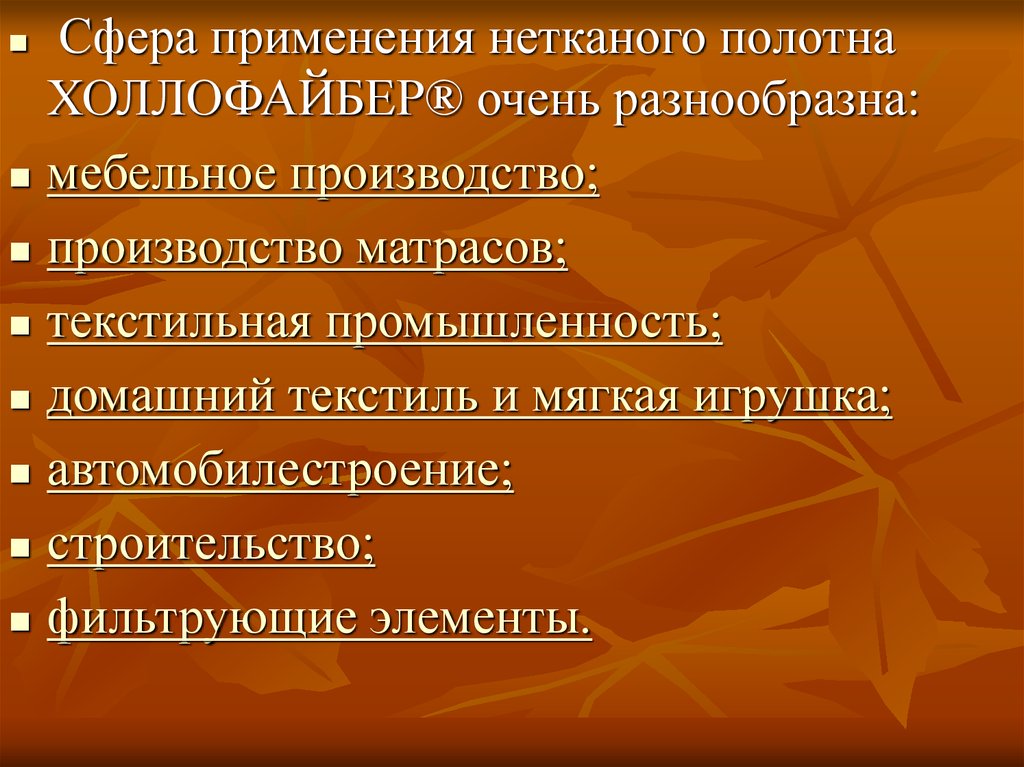 Сфера применения нетканого полотнаХОЛЛОФАЙБЕР® очень разнообразна:
