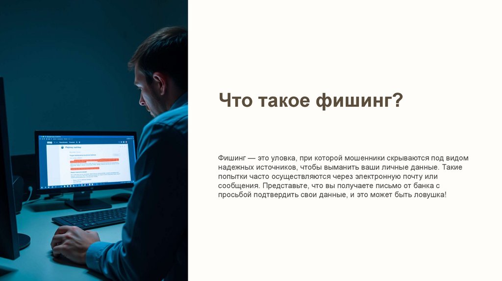 Что такое фишинг?Фишинг — это уловка, при которой мошенники скрываются под видом