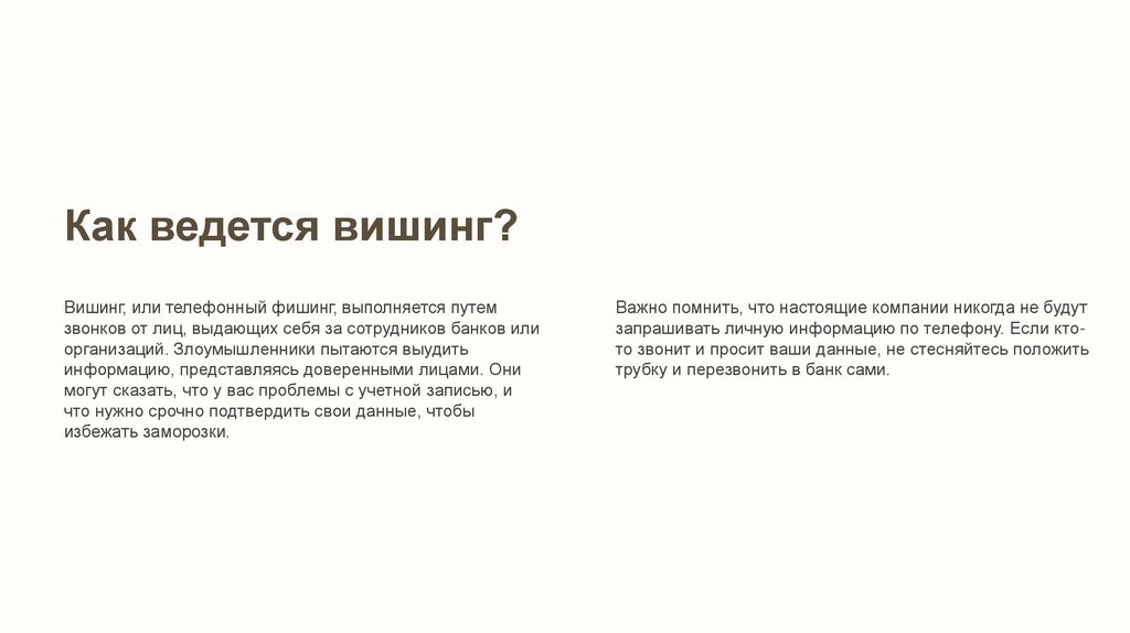 Как ведется вишинг?Вишинг, или телефонный фишинг, выполняется путем