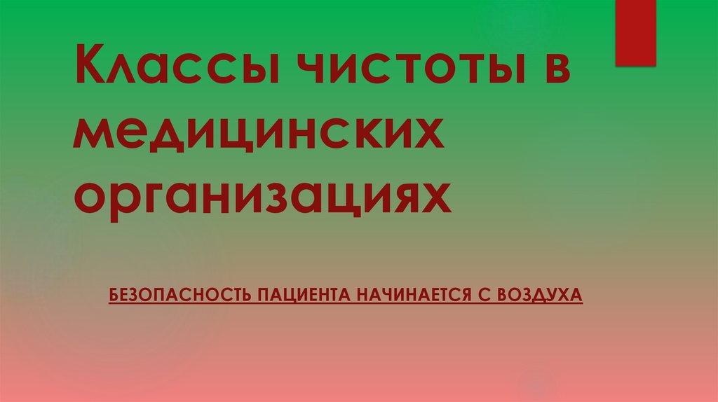 БЕЗОПАСНОСТЬ ПАЦИЕНТА НАЧИНАЕТСЯ С ВОЗДУХА2. Что такое классы чистоты?