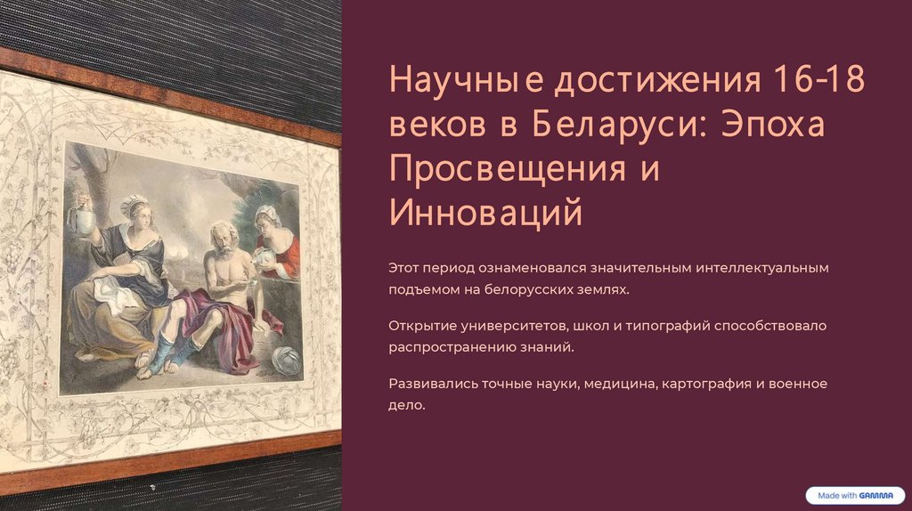 Научны е достижения 1 6-1 8веков в Б ел аруси: Эпох а