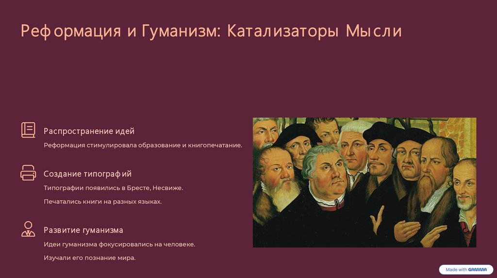 Реф ормация и Гуманизм: Катал изаторы Мы сл иРаспространение идей