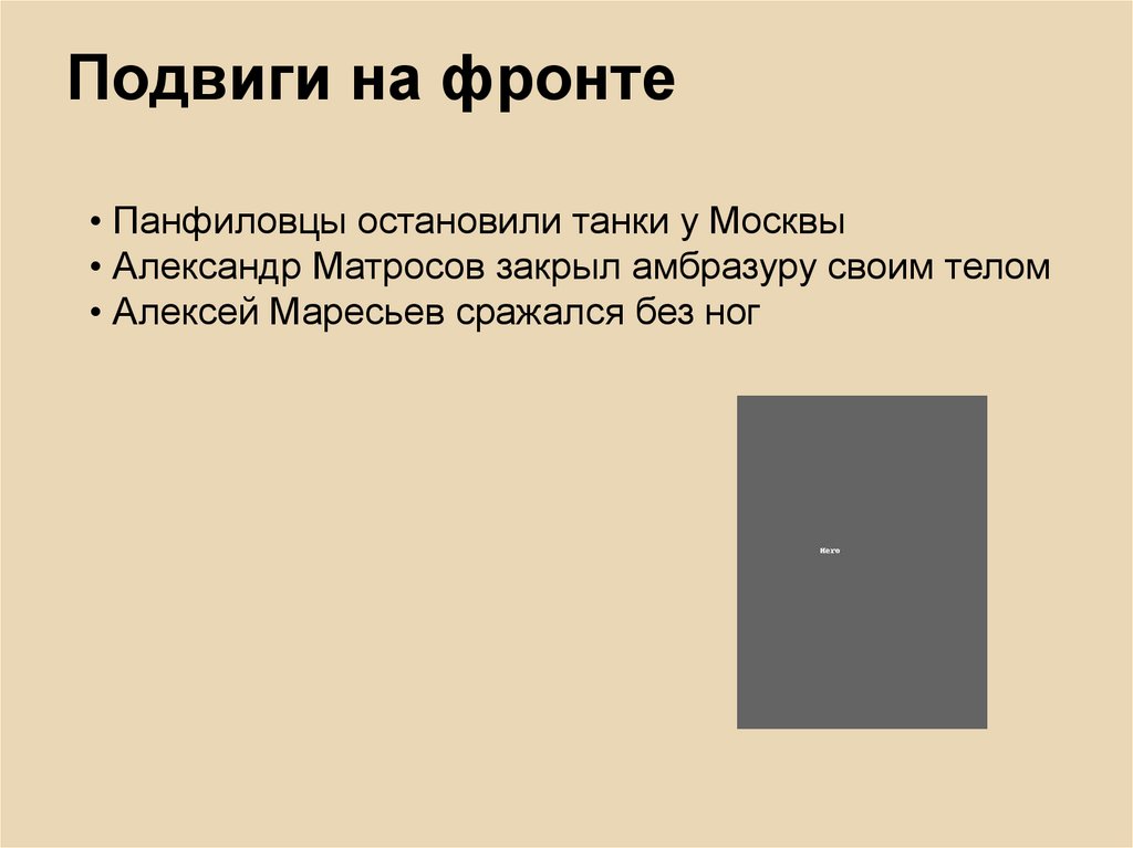 Подвиги на фронте• Панфиловцы остановили танки у Москвы