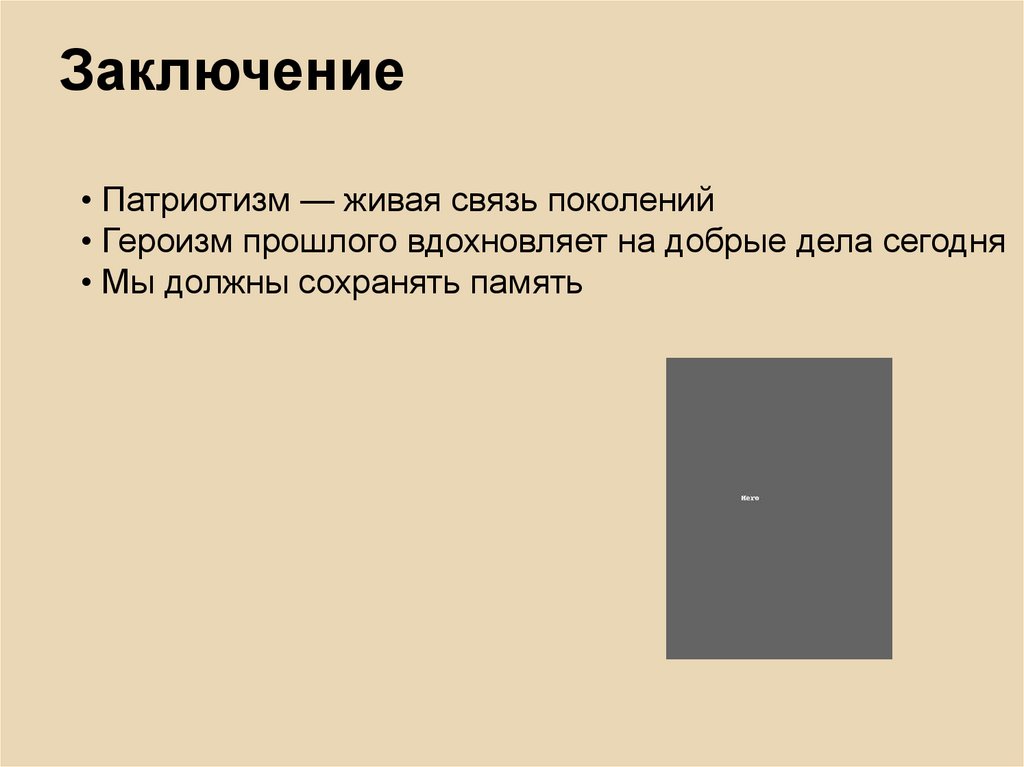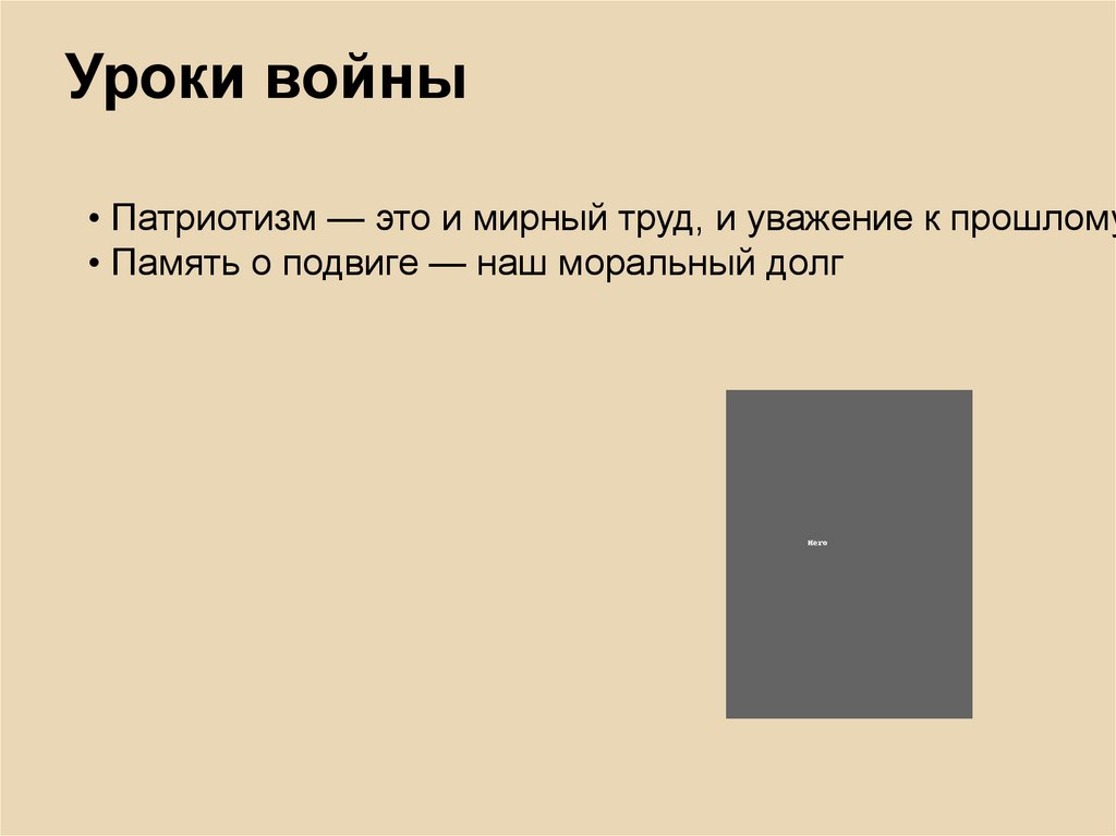 Уроки войны• Патриотизм — это и мирный труд, и уважение к прошлому