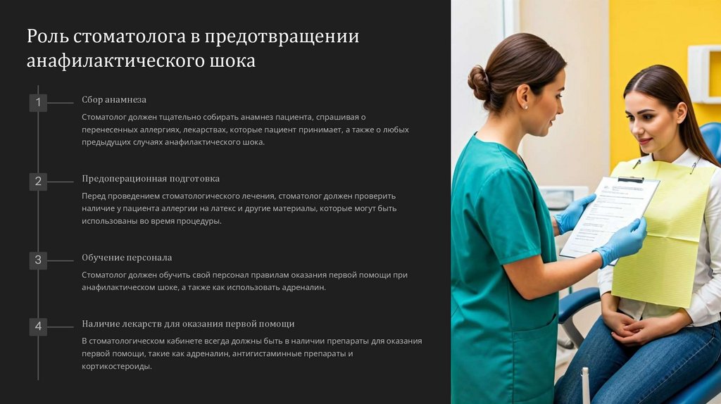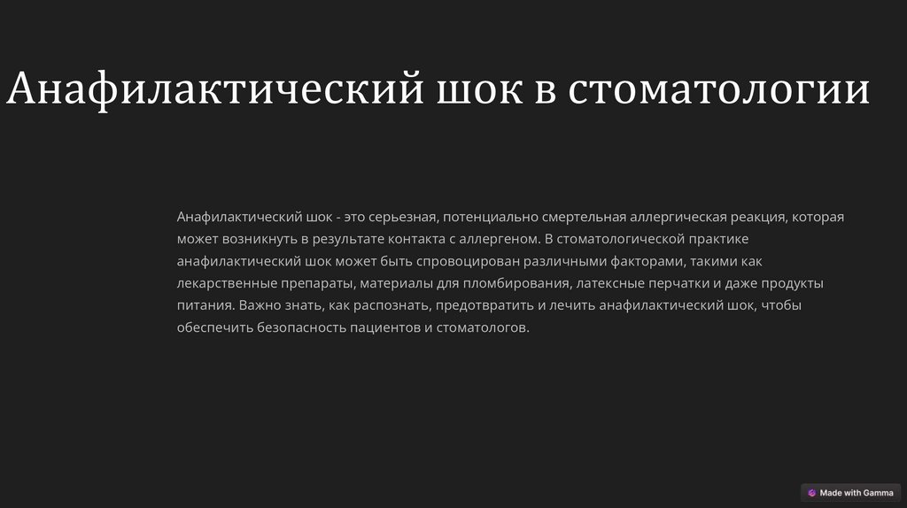 Анафилактический шок в стоматологииАнафилактический шок - это серьезная, потенциально смертельная аллергическая реакция, которая