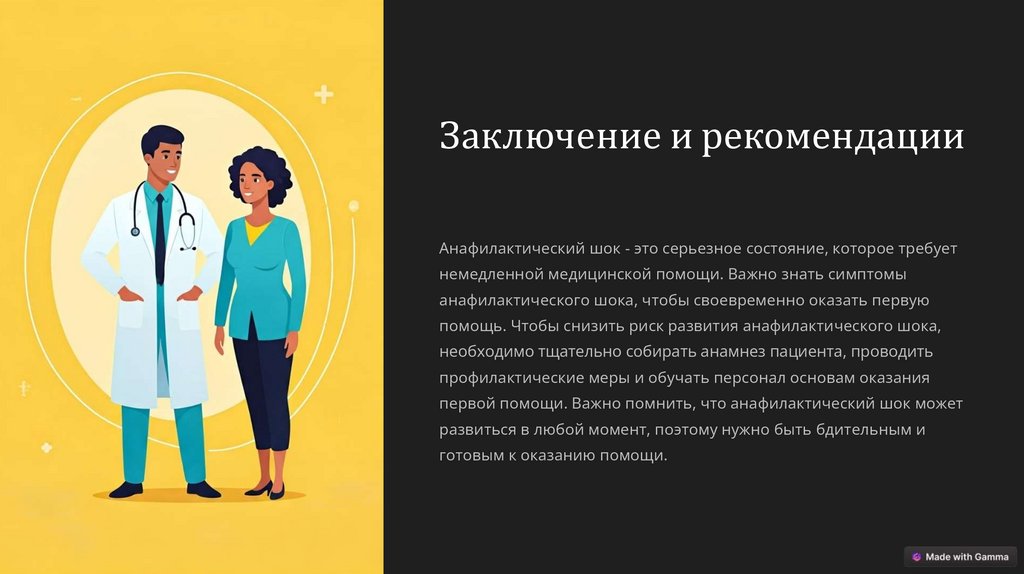 Заключение и рекомендацииАнафилактический шок - это серьезное состояние, которое требует