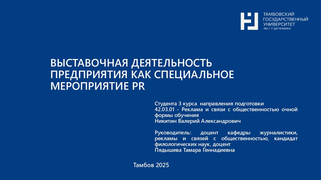 ВЫСТАВОЧНАЯ ДЕЯТЕЛЬНОСТЬПРЕДПРИЯТИЯ КАК СПЕЦИАЛЬНОЕ