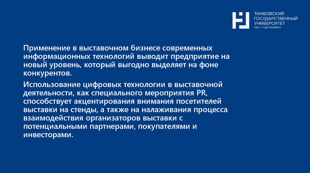 Применение в выставочном бизнесе современныхинформационных технологий выводит предприятие на