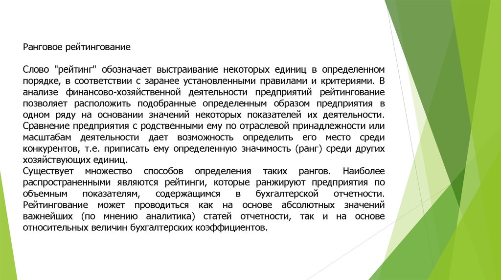 при проведении рейтинговой оценки различных хозяйствующих субъектов. В
