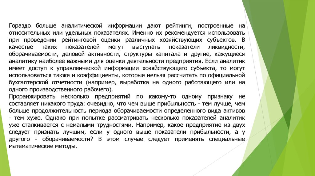 Гораздо больше аналитической информации дают рейтинги, построенные наотносительных или удельных показателях. Именно их рекомендуется использовать