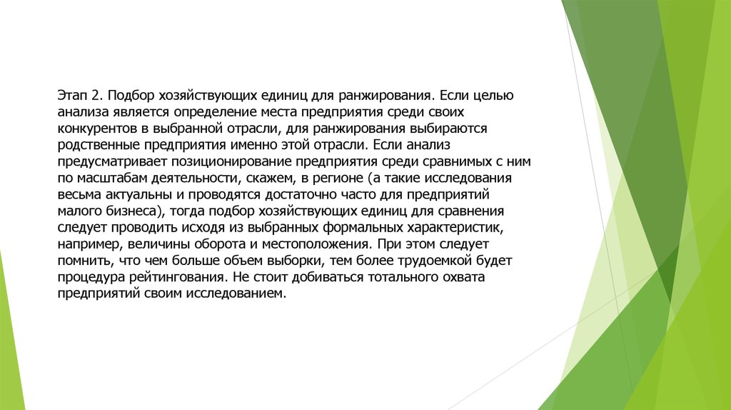 Этап 2. Подбор хозяйствующих единиц для ранжирования. Если цельюанализа является определение места предприятия среди своих