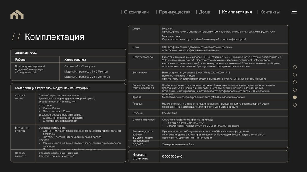 Комплектация каркасной модульной конструкции: