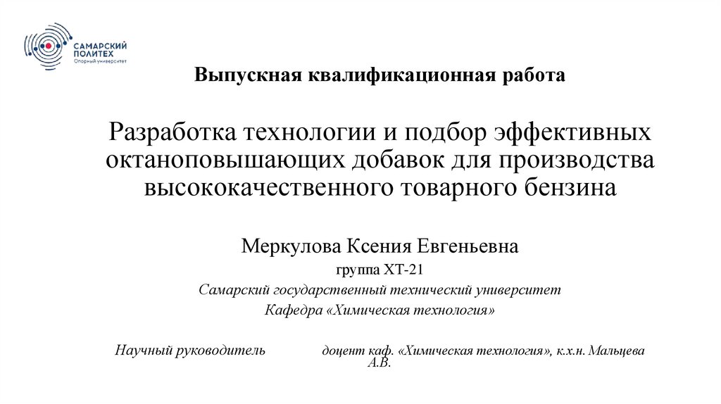 Разработка технологии и подбор эффективных октаноповышающих добавок для производства высококачественного товарного бензина