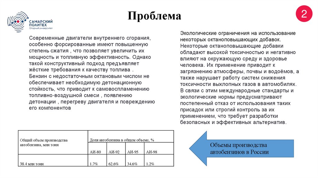ПроблемаСовременные двигатели внутреннего сгорания,
