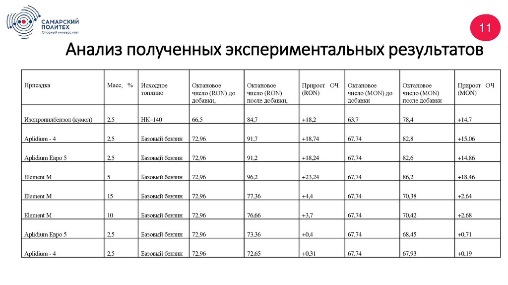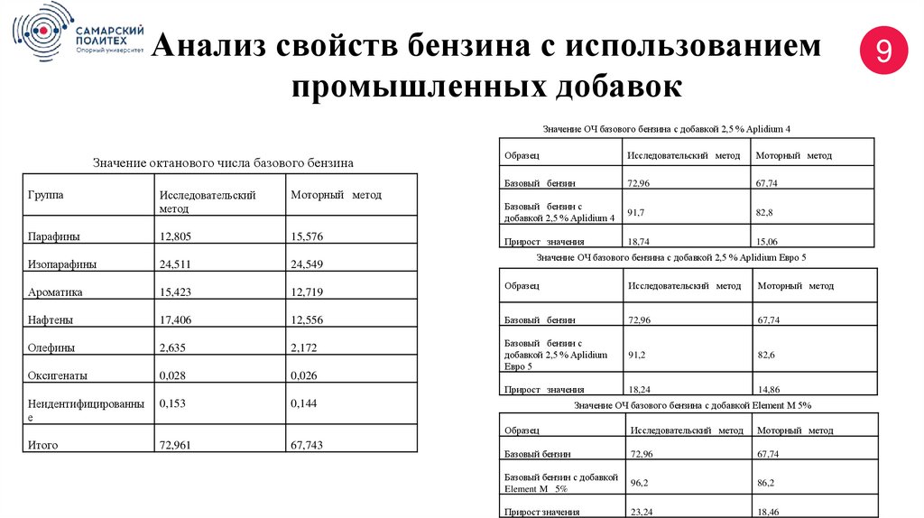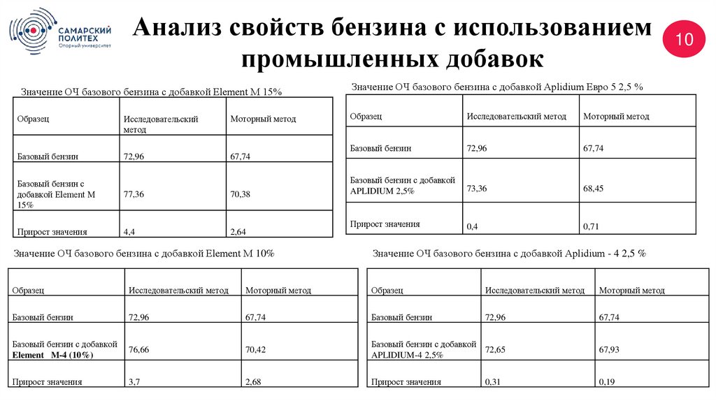 антидетонационные свойства различных присадок и их влияние на октановое число бензиновых