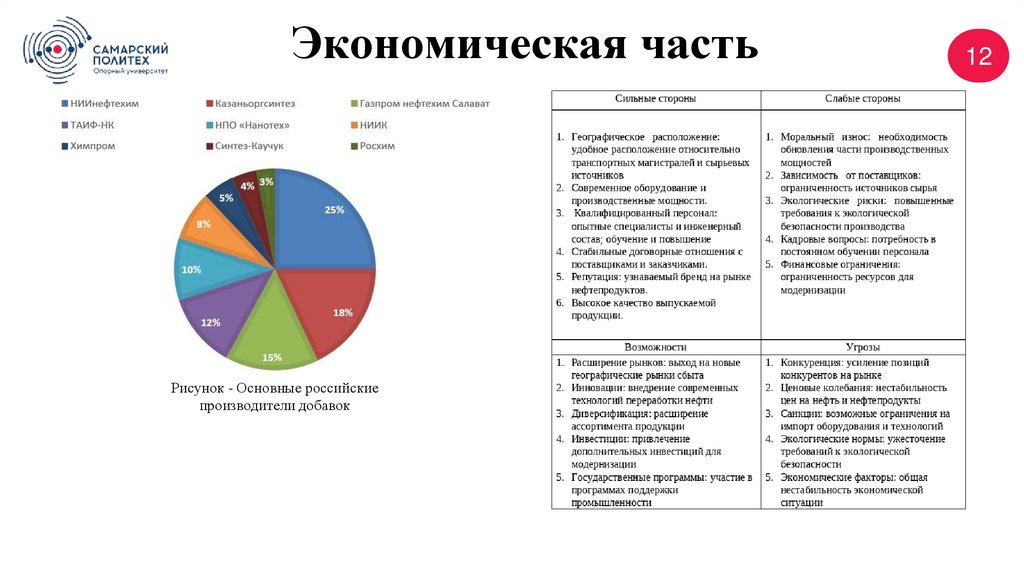 • В экономической части был рассмотрен обзор Российского рынка, составлен SWOT - анализ