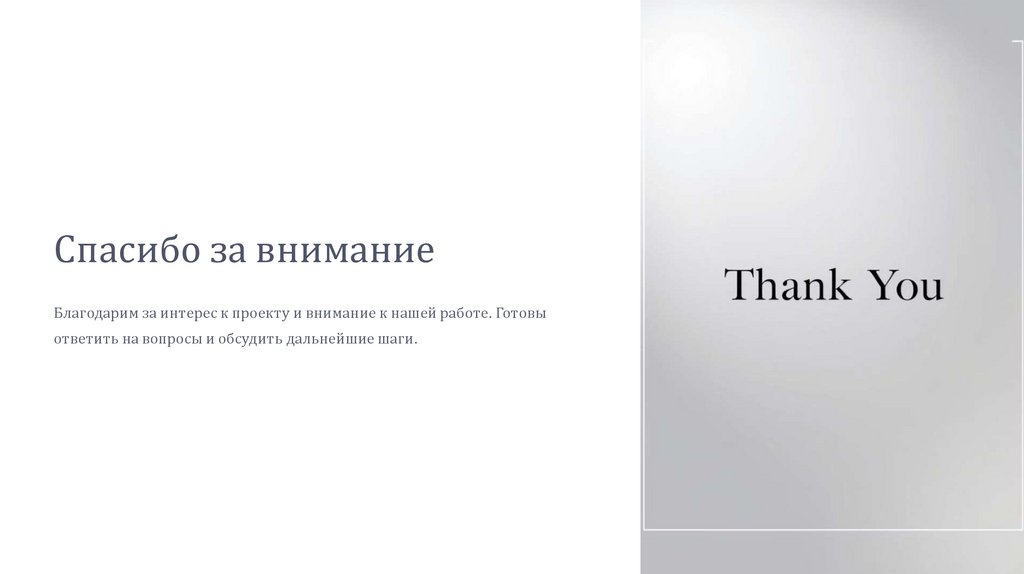 Спасибо за вниманиеБлагодарим за интерес к проекту и внимание к нашей работе. Готовы