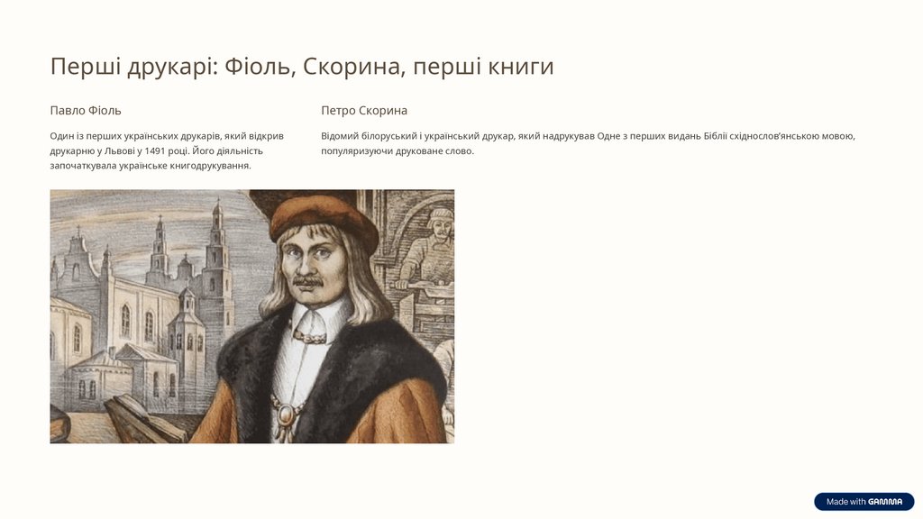 Перші друкарі: Фіоль, Скорина, перші книгиПавло Фіоль