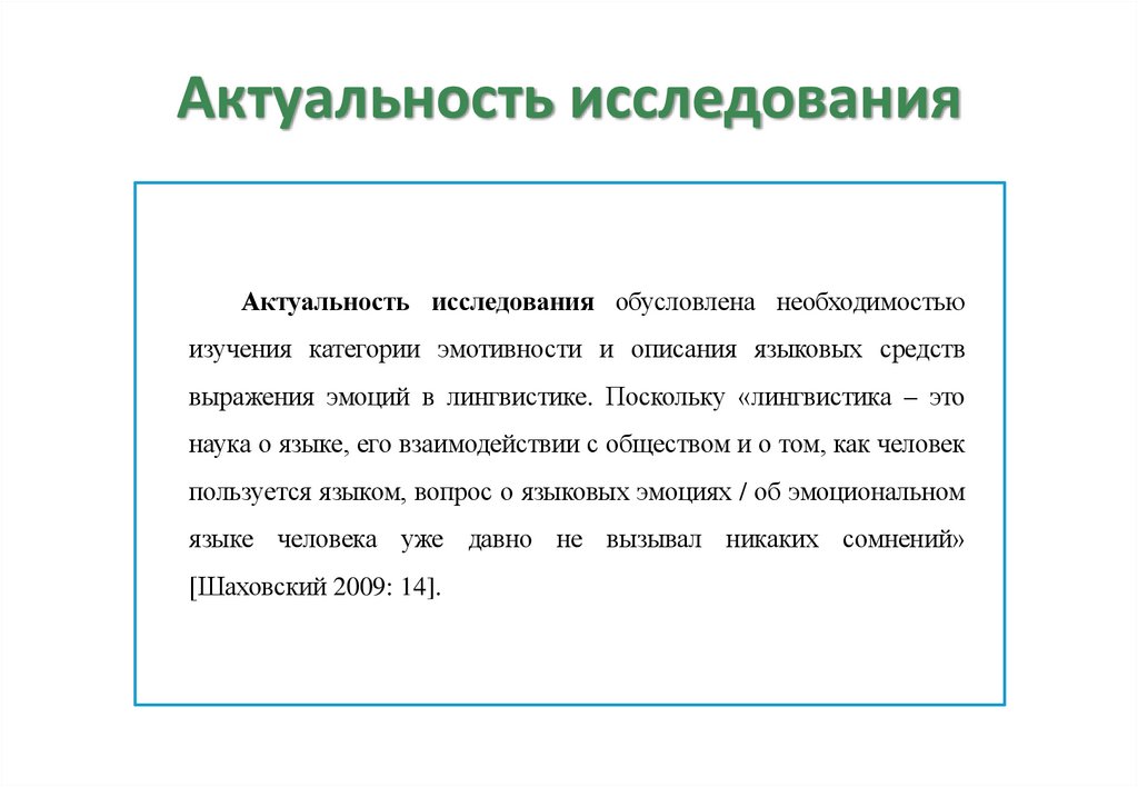 Актуальность исследования обусловлена необходимостьюизучения категории эмотивности и описания языковых средств