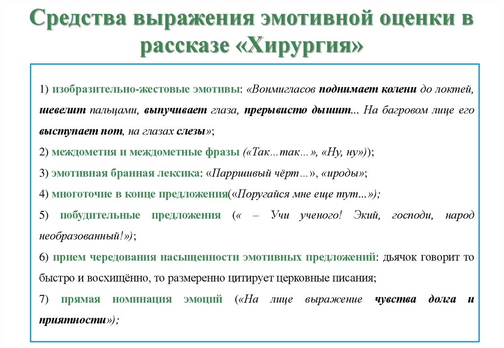 6. Средства выражения эмотивной оценки в рассказе «Хирургия»