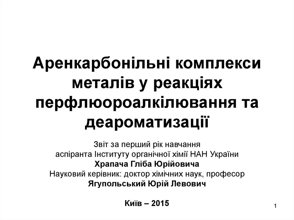 Звіт за перший рік навчанняаспіранта Інституту органічної хімії НАН України